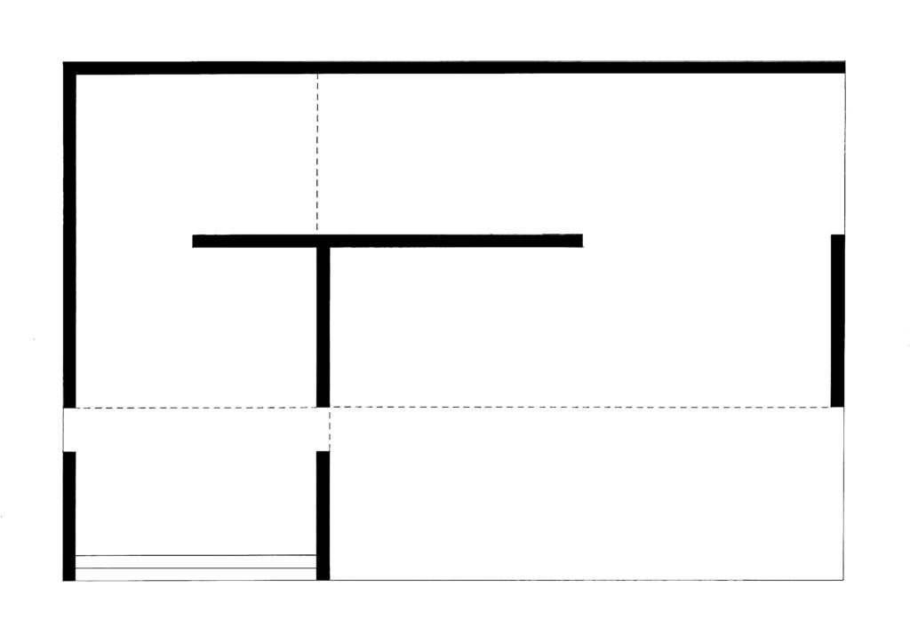 La parcelle de projet mesure 12m x 18m, soit un rapport de 2 x 3. Cette proportion est répétée à plusieurs reprises dans le projet : dans les toitures et dans certains murs. Cette proportion a aussi permis la création d’une grille en tiers (4m x 6m) sur laquelle les éléments sont placés et les séquences spatiales sont fondées.