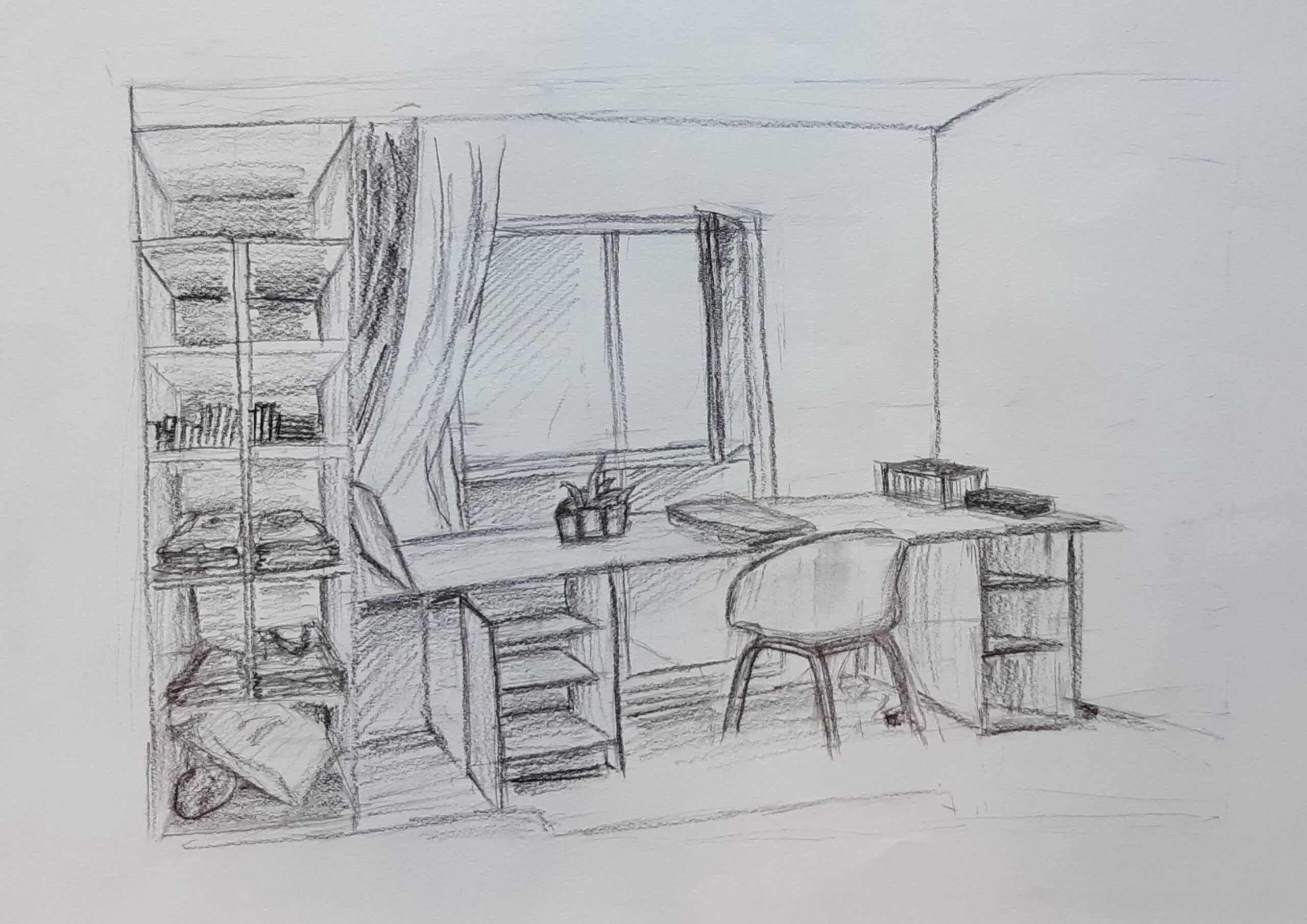 Travail : Réaliser un plan et des coupes au 1/50° ainsi que des croquis de sa chambre ou son studio.