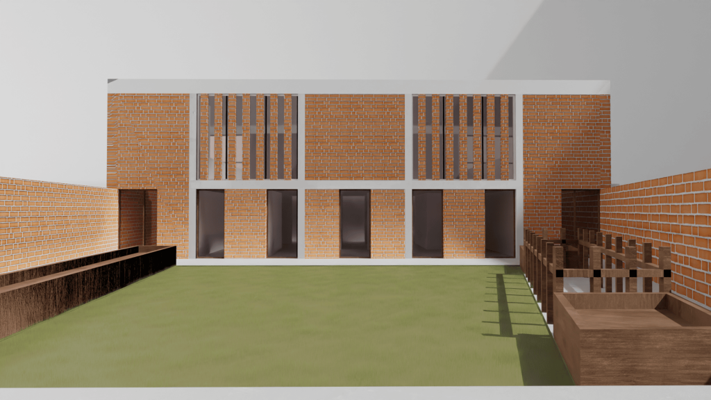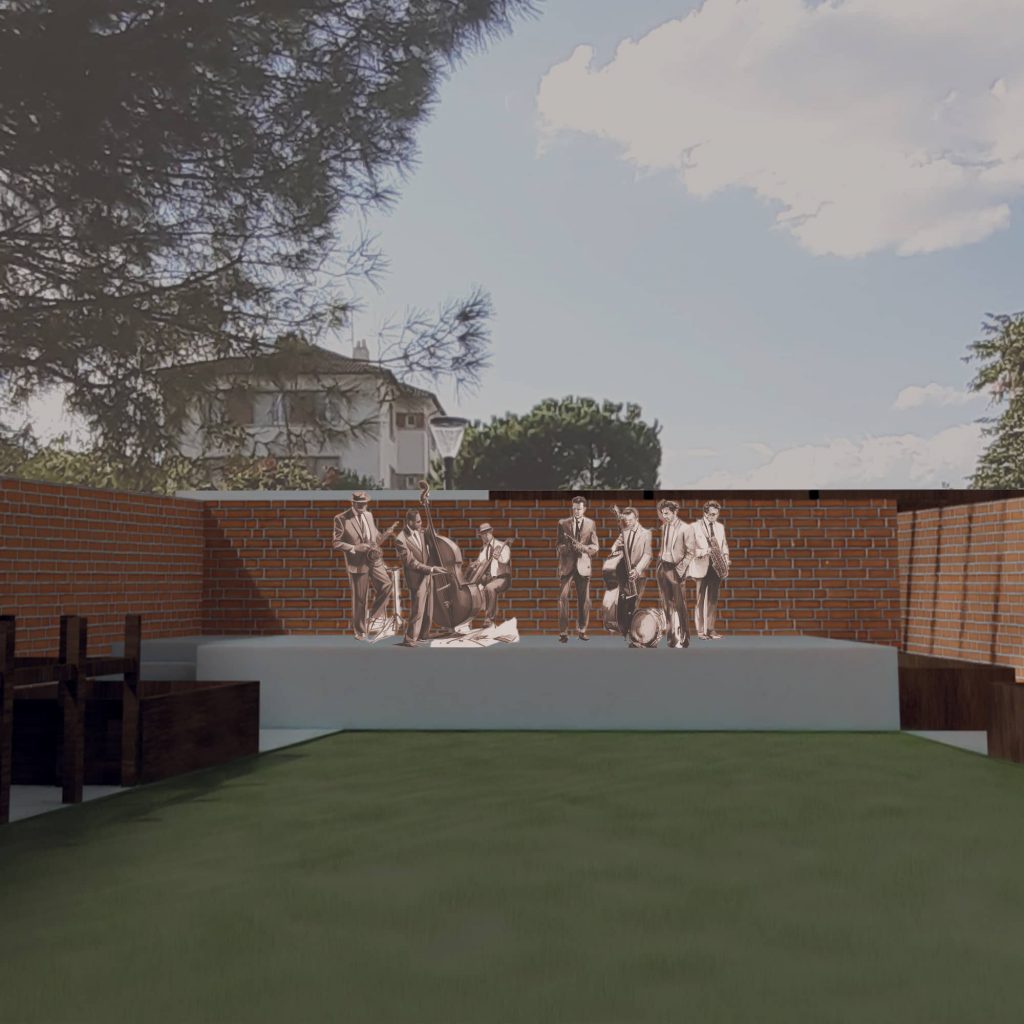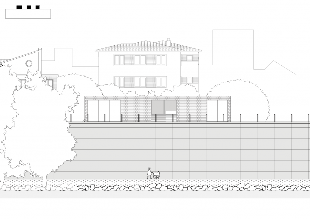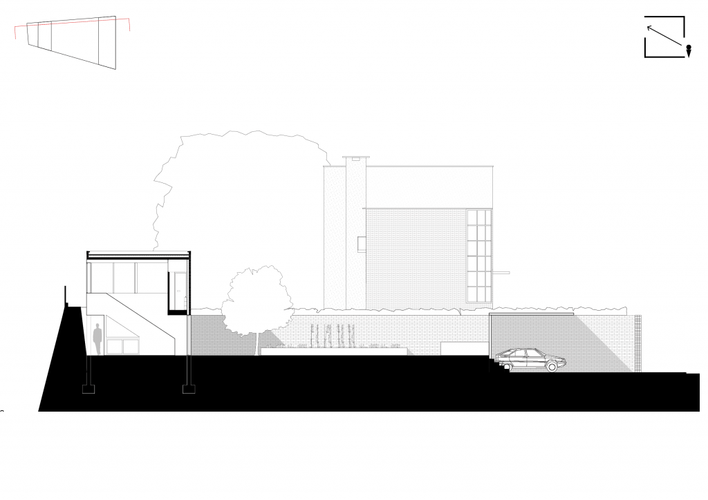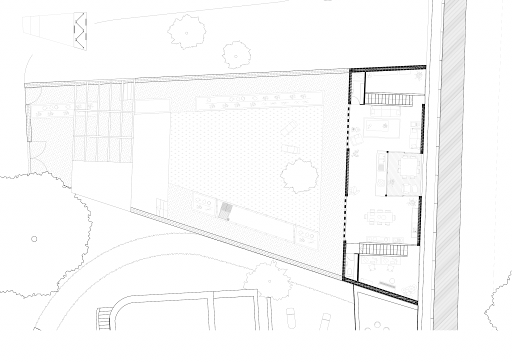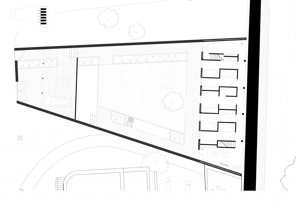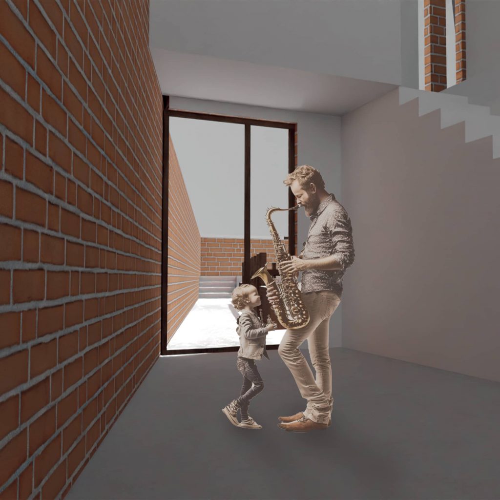 Programme : Concevoir une maison pour un couple de musiciens ayant 3 enfants en bas-âge. Pour le couple, la maison est un lieu d’échange et de partage avec sa famille et ses amis, l’intime y est secondaire. Leur seule condition pour habiter en ville est d’avoir un grand jardin. Un salon, une cuisine, une terrasse, quatre chambres et une salle de musique sont demandées.