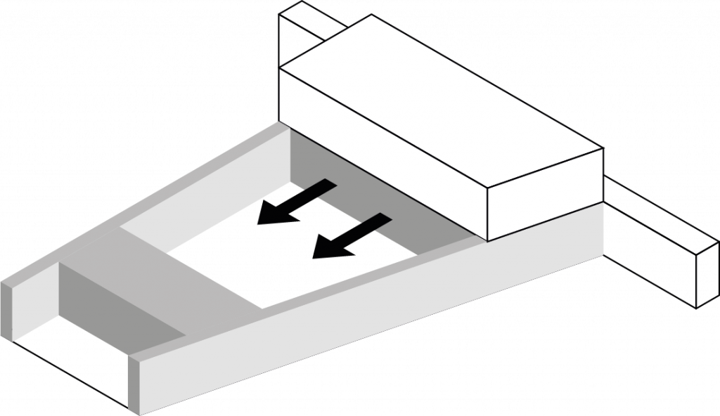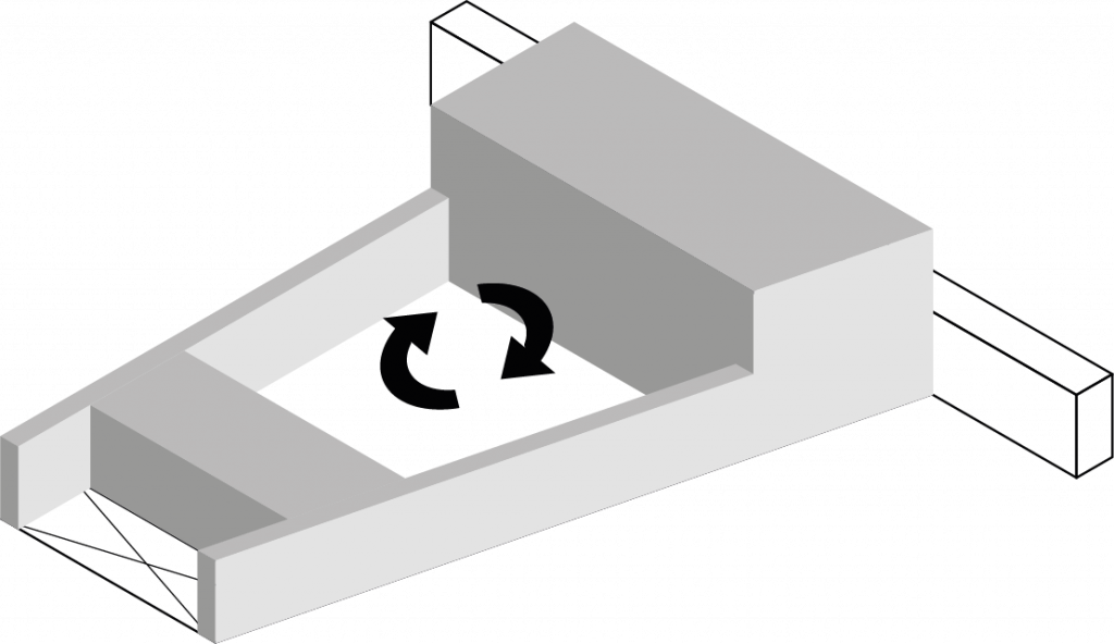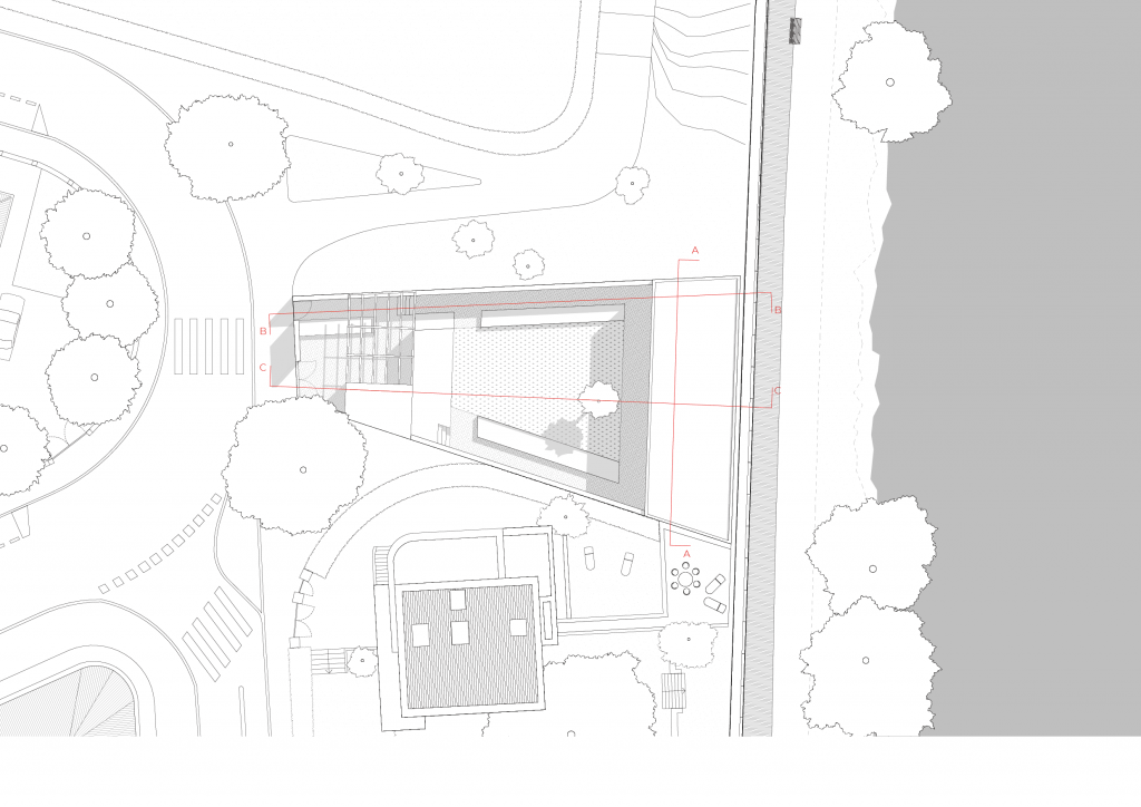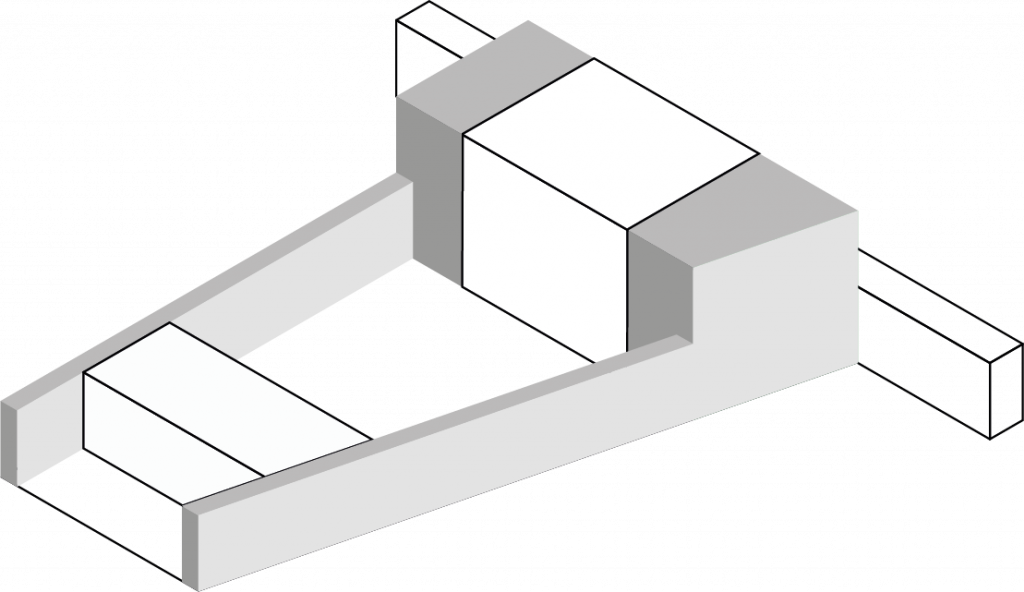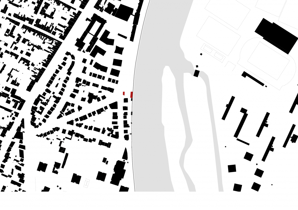 Après avoir analysé le site et la parcelle de projet, nous avons donc décidé d’en définir les contraintes, les manques et les opportunités qu’il nous offraient. La première contrainte était la nécessité d’un alignement au tissu urbain afin de garder une harmonie dans le paysage urbain. La seconde contrainte était l’enfermement de la digue. Comment faire en sorte que la digue ne soit pas un masque? Selon nous, l’opportunité principale résidait dans le rapport du site au paysage. Enfin, le manque majeur que nous avons repéré était le manque d’intimité de l’emplacement, en opposition avec la demande du programme.