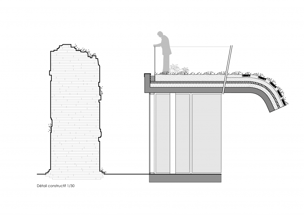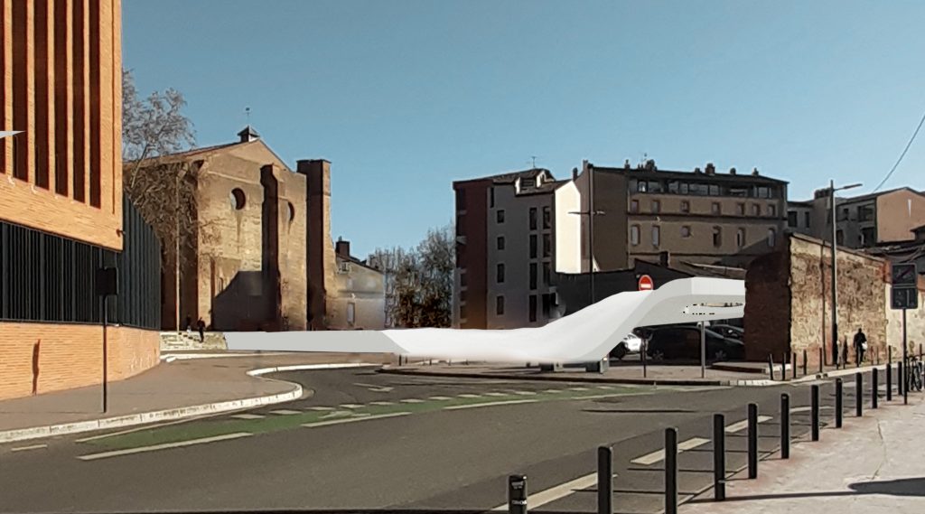 Programme : Créer un espace public avec un programme original et adapté au contexte. Au cœur de monuments historiques d’époques variées, nous avons pensé qu’un tiers-lieu intergénérationnel pourrait avoir un sens symbolique. Comme l’esplanade, le projet serait une rencontre intergénérationnelle.