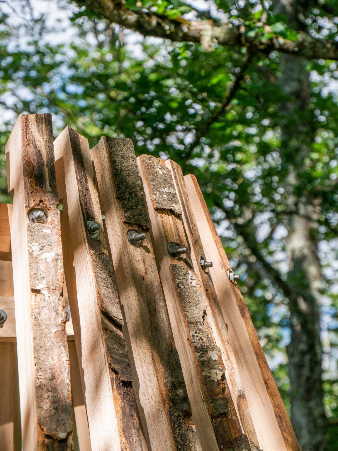 Enfin, la construction repose sur des assemblages simples (rotation, calage, emboitement) et récurrents afin de simplifier le chantier. Toutefois, ces assemblages doivent prendre en compte l’irrégularité de l’écorce.