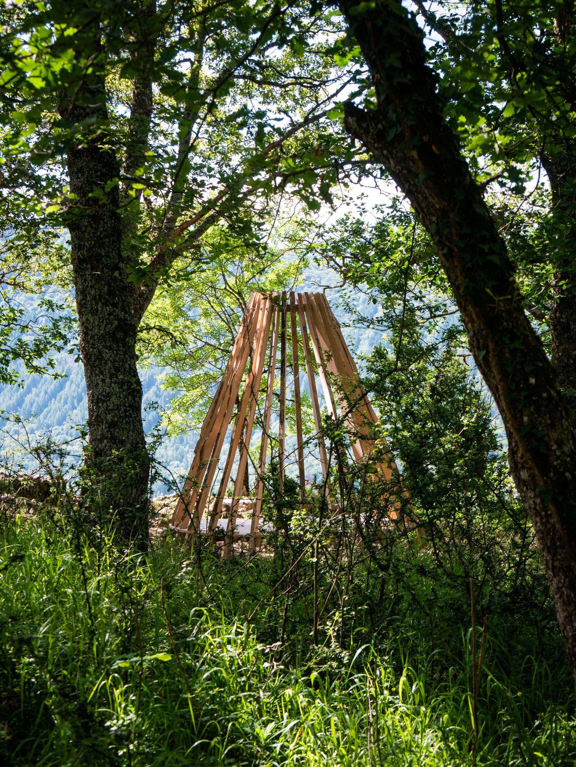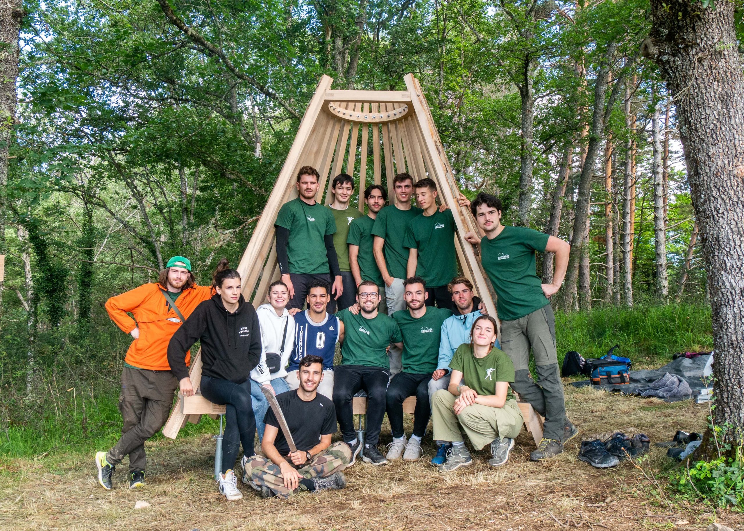 Concours : imaginer un équipement éphémère en bois au service des randonneurs. Toutes les pièces sont préfabriquées en atelier par les lauréats, puis montées à dos d’homme de la vallée au site de chantier.