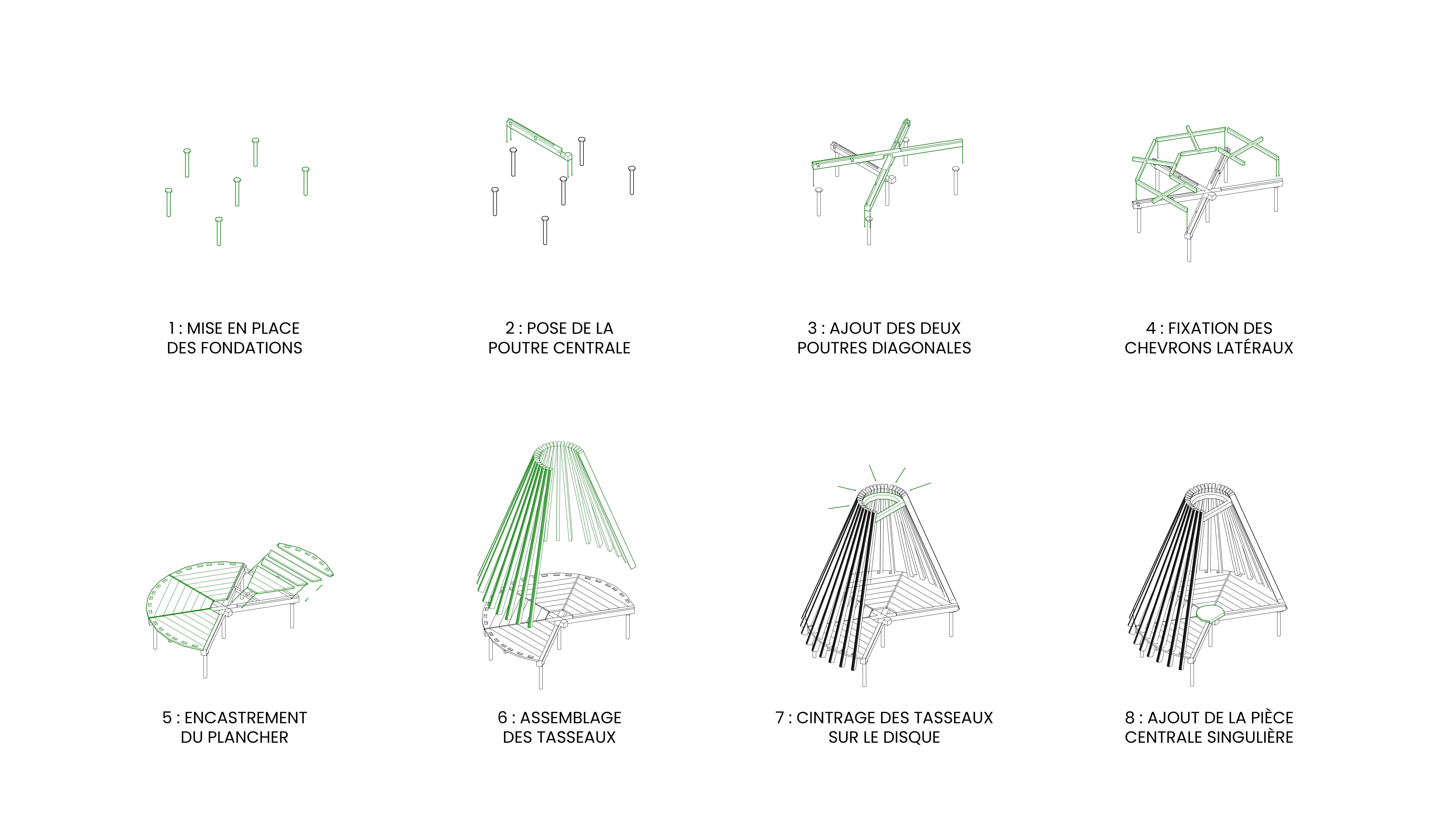 Ce concours pose trois défis techniques majeurs : la préfabrication, l’acheminement des pièces sur site et l’assemblage. Pour cela, le projet utilise peu de pièces, environ 80. La forme en « tipi » n’est d’ailleurs pas un hasard : les tipis, à l’instar des tchoums en Sibérie, sont des habitats nomades utilisés dans des zones dans lesquelles les ressources en bois sont rares. L’économie de matière et le transport de la structure sont aussi nos défis.