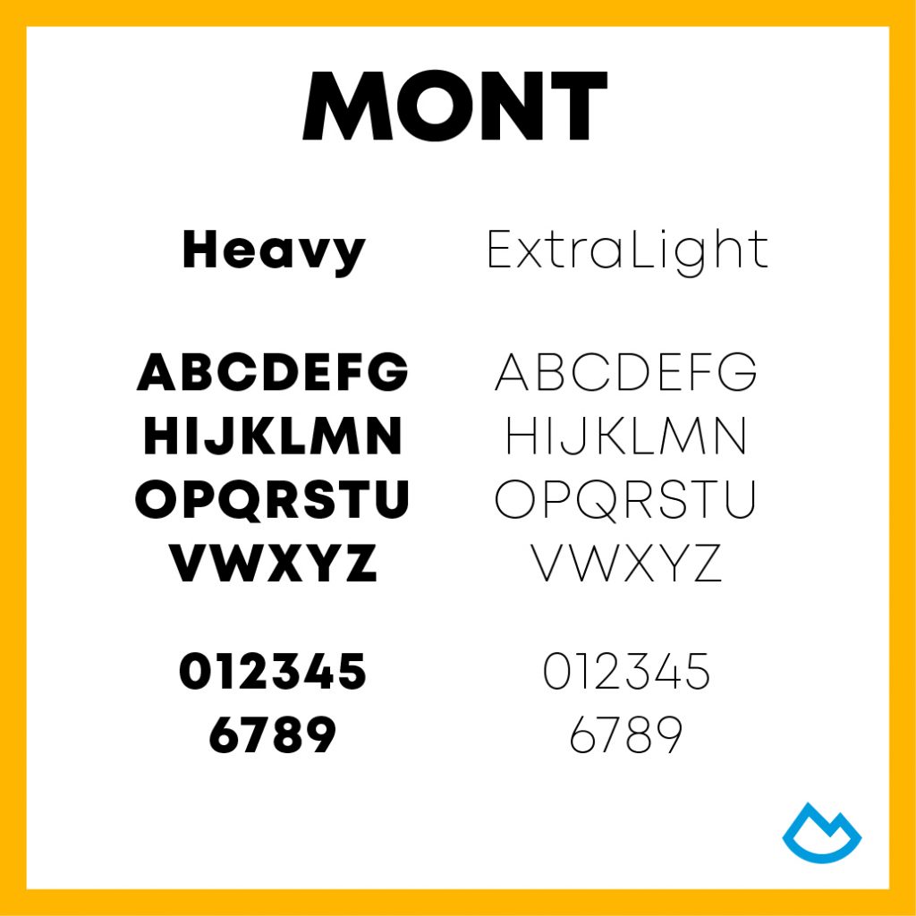 Mont est une famille de police composée de 20 graisses différentes, dont deux gratuites (Heavy et Extralight)