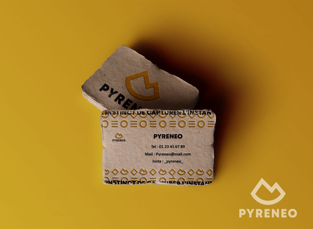 L’utilisation de motifs sur divers éléments (cartes de visites, vêtements…) permet d’élargir l’identité graphique de Pyreneo.